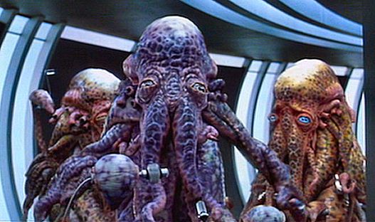Taggart figures out what’s going on, and gets the rest of the crew to join him back at the alien ship. They still think he’s joking. One of the funniest scenes is when the rest of the crew is teleported to the ship and the aliens, forgetting to mask their true, octopus/elephant/monster forms, stick probes in their faces. Well, it’s funnier than it sounds.