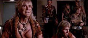 Again, the plot? It seems that Admiral Marcus (a scenery chewing Peter Weller) thawed out the frozen 300 year old superman Khan to use his superior, warrior intellect to help design a super deathship with superweapons to use against Klingons, who have been acting up of late. Khan helped, but it made him mad, because he didn’t want to be woken up, and because Marrcus didn’t treat Khan’s 72 superhuman crewmembers well, or then again maybe he killed them? Did Khan say that? He says something about his crew, yet we find all 72 of them still frozen. In fact Khan, or maybe Marcus, has kidden the frozen crew inside superduper photon torpedoes, and once Khan goes rogue and kills a bunch of people and hides out on the Klingon planet Kronos, Marcus “allows” Kirk to hunt him down and shoot all 72 torpedoes at the planet, thus killing Khan, killing all 72 crewmembers, and starting a war with the Klingons, which according to Marcus is going to happen anyway, so we might as well just get it going now. Whew.