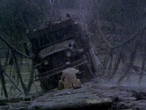 It’s easy to praise some of the truck-driving action sequences, particularly the bridge sequence, in which the two trucks, one after the other, are forced to cross a fragile wood and rope suspension bridge over a raging river in a jungle downpour. It took months to film, cost millions, looks great, and I didn’t a care a whit who lived or died. Friedkin works so hard to eliminate anything resembling sentiment he eliminates anything related to character in the process. It’s baffling.