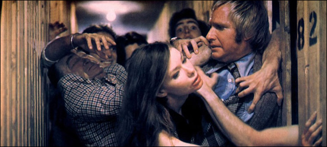 shivers they came from withinShivers takes place in a modern apartment complex, the Starliner Towers, located on a kind of island apart from the rest of the world. An enclave for the upper/middle class. One might guess Cronenberg was influenced in locale by J.G. Ballard’s novel High Rise, but it was published the same year. Like minds must think alike.