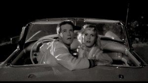 Writer/director Fred Dekker borrowed The Blob‘s iconic opening and cooked it up with a hundred other classic sci-fi conventions to make his low-budget ‘86 horror/comedy, Night of The Creeps. He even provides an absurd prologue aboard an alien spaceship, where a bunch of snarly-faced rubber doll people run around shooting poorly aimed laser beams at one of their crew, who’s intent on ejecting into space an “experiment” the others would rather he didn’t.