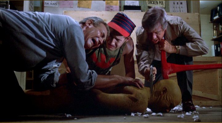 And, finally, Don Calfa, in movies since the ‘60s, including Scorsese’s New York, New York, Spielberg’s 1941, and Weekend At Bernie’s. His best role? Ernie the mortician. Watch his first scene, when Frank and Freddy and Burt arrive with the “rabid weasels.” Like Gulagar and Karen, his total commitment to the role sells the absurdity. Each of these guys deserved an Oscar nomination for Best Supporting Actor. Who won that year? Don Ameche for Cocoon? Who on earth has watched Cocoon since the ‘80s who isn’t related to Ron Howard? No one, that’s who. Don Ameche is great, sure. But he stole that award, goddammit! James Karen earned it, and did the Acamedy even look his way? No.