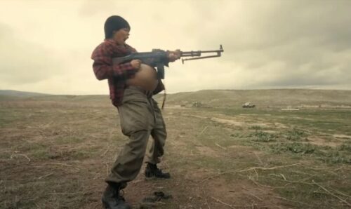 The rest of the cast is deadly, deadly serious. What are they serious about? Bombing stuff. Taking it to the man. Revolution. Against what and whom are they revolting? Unstated. The film is not set in any given time. It begins, and one imagines it’s the present, but then 16 years go by, and it’s still the present. We see people in cages at borders. Seems bad. Seems familiar. Bob and his lady, Perfidia (Teyana Taylor), bust a bunch of people out at the start of the movie…by packing them like sardines into the back of a semi? Hm. Maybe not the best plan…But forget about that, because Sean Penn plays Colonel Lockjaw as the most absurd, comically evil army guy since Chip Hazard, the plastic war action-figure in Small Soldiers. There’s some business about Perfidia forcing him to grow a big ol’ hard-on, and then he’s got a thing for her, and then he nabs her, and she, what, refuses to name names and takes her punishment like a true revolutionary? Nope, she rats out her “friends,” because of which they’re all hunted down and shot dead.